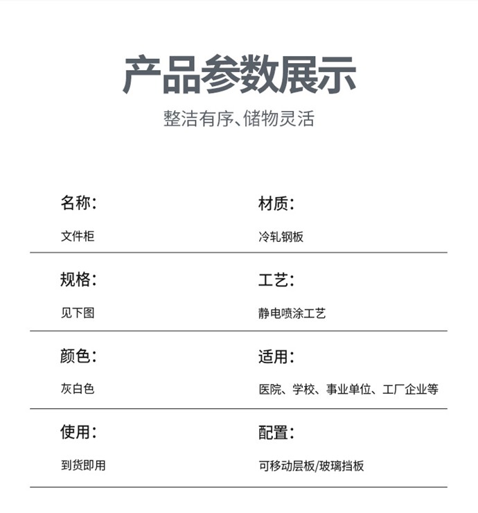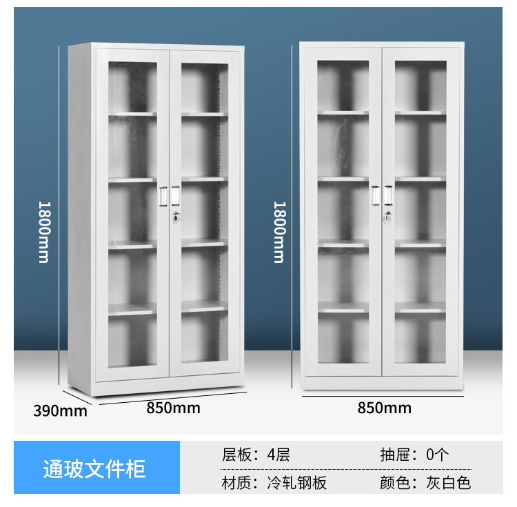 產(chǎn)品簡介:1、通玻文件柜:規(guī)格:H31800*W850*D 390