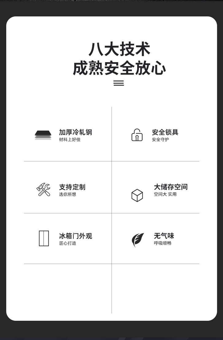1、密碼文件柜:規(guī)格:H1850*W900*D420 2、產(chǎn)品說明:按錯密碼三次自動報警5分鐘,人為破壞自動報警5分鐘,2組密碼1-8位隨意設置,全鋼板結構 。產(chǎn)品配置:內(nèi)配置二塊活動層板可上下隨意調(diào)動,電路版1塊已按裝,應急鑰匙1把用于忘記密碼和柜內(nèi)無電情況下使用,注意:應急鑰匙要和主鑰匙分開保管,因為應急鑰匙和主鑰匙同時使用不需要密碼就能打開。電池4粒,注意經(jīng)常檢查電量,如電量不足時,要急時更換,以免打不開,外接電池盒1個在內(nèi)部無電量時使用,說明書1本說明怎樣使用和設置自已的密碼,保修卡1張。 3、采用優(yōu)質(zhì)加厚鋼板,內(nèi)外表面磷化噴塑,內(nèi)藏式不易被撬門三方向多點鎖定,不易被撬,適用于地方:需要存放保密文件和包裹的單位和個人等等適用到此柜。 3、產(chǎn)品保養(yǎng): 1、放置:適宜放在干燥的地方。 2、清潔:如果表面有灰塵,使布擦干凈即可,不易清潔部分可先用牙膏涂抹后再清潔。