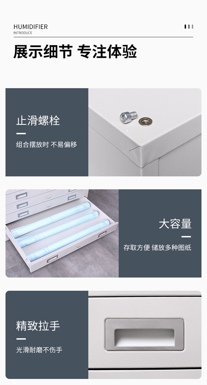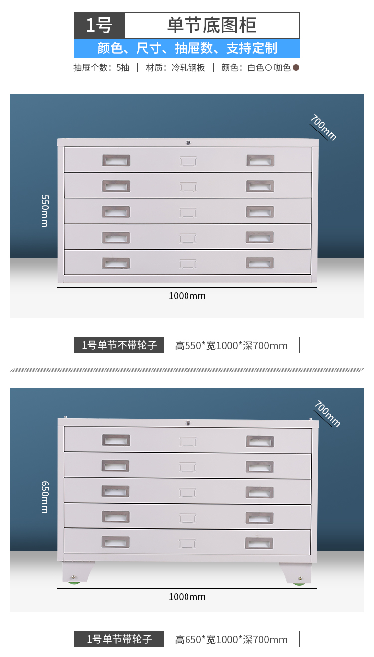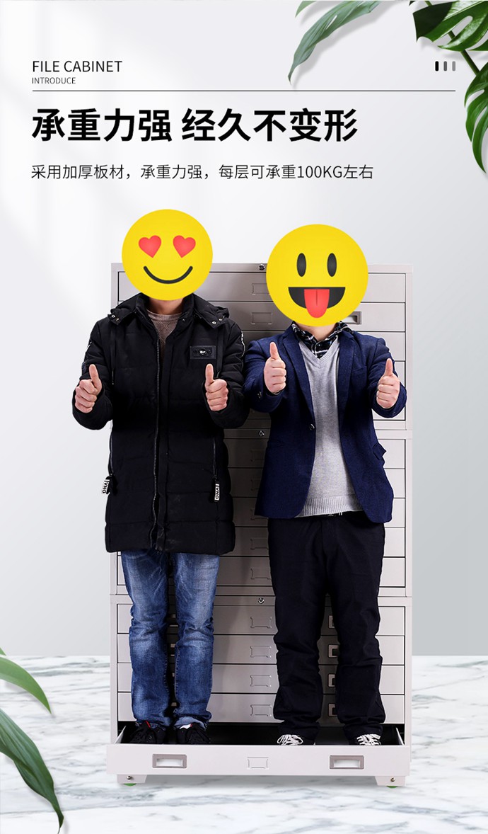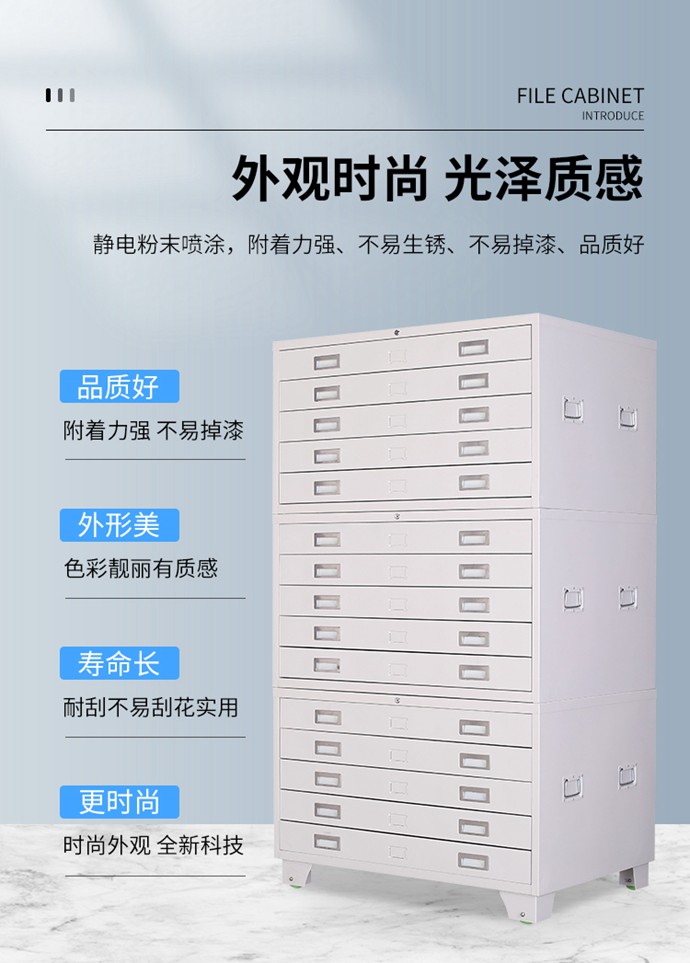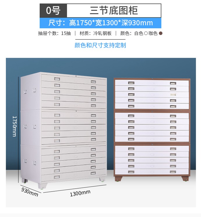 產(chǎn)品簡介:重慶貴寶辦公家具有限公司產(chǎn)品介紹: 1、底圖柜:規(guī)格:單節(jié)0# H550*W1300*D 940/ 單節(jié)1# H550*W1000*D 700,常規(guī)3節(jié)為1套。 2、常規(guī)選用裸板1.0mm進優(yōu)質(zhì)冷軋鋼板,噴涂后可達1.1mm 3、表面經(jīng)酸洗、磷化、九工位等處理。 4、表面處理后經(jīng)靜電噴塑工藝,對人體及周圍環(huán)境沒害。 5、適用各企業(yè)單位、事業(yè)單位、學(xué)校、公司等辦公場所。 6、產(chǎn)品保養(yǎng): 1、放置:適宜放在干燥的地方。 2、清潔:如果表面有灰塵,使布擦干凈即可,不易清潔部分可先用牙膏涂抹后再清潔。