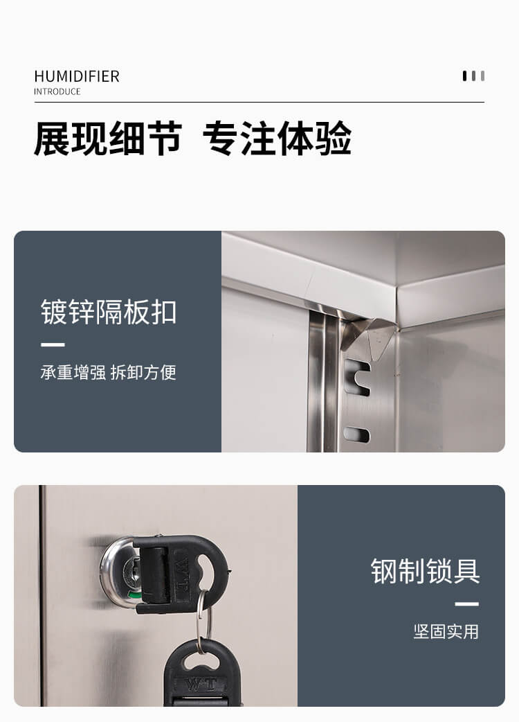 產(chǎn)品簡(jiǎn)介:產(chǎn)品簡(jiǎn)介:重慶貴寶辦公家具有限公司產(chǎn)品介紹: 1、不銹鋼柜:規(guī)格:H1800*W900*D 400 可來(lái)樣訂做,根據(jù)客戶要求定做。 常規(guī)選用201/304不銹鋼1.0mm-0.8mm不銹鋼板經(jīng)剪切、沖壓、折彎、焊接、裝配而成。美觀大方,無(wú)凹凸感,耐壓能力強(qiáng)。表面干凈,產(chǎn)品質(zhì)量穩(wěn)定。結(jié)合能力強(qiáng),具有柔韌性、耐腐性和裝飾性產(chǎn)品。 2、產(chǎn)品保養(yǎng): 3、清潔:如果表面有灰塵,使布擦干凈即可,不易清潔部分可先用色拉油涂抹后再用衛(wèi)生紙擦試清潔或者用灑精直接擦。