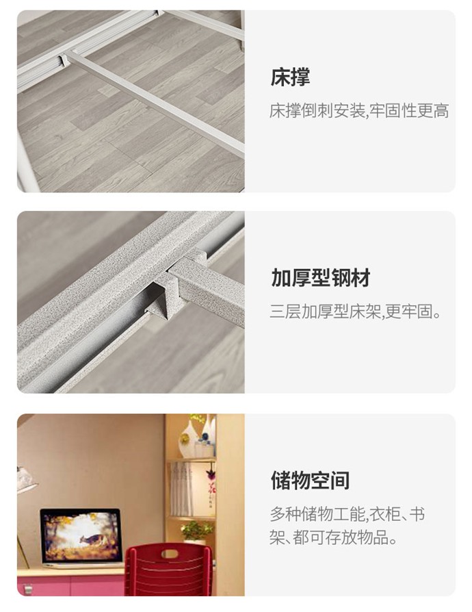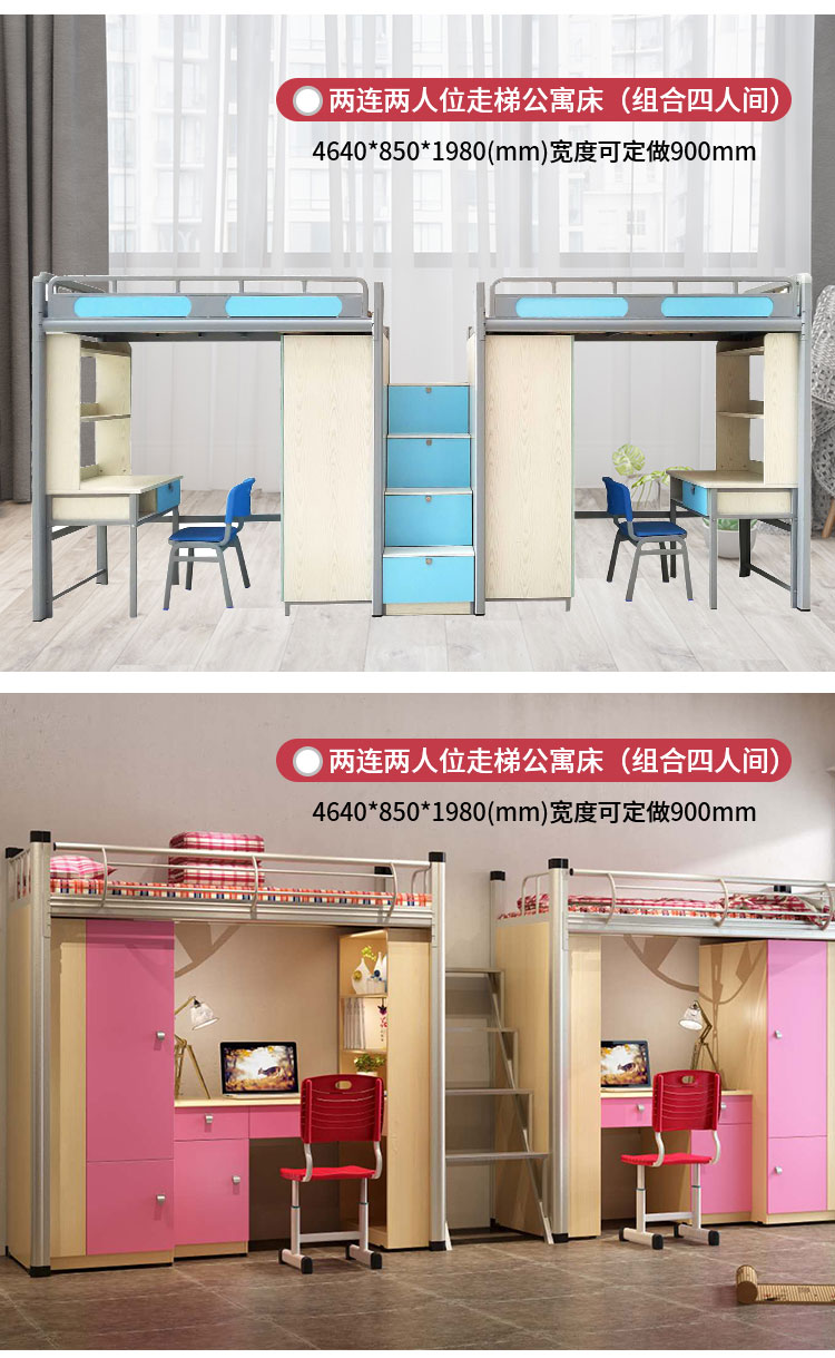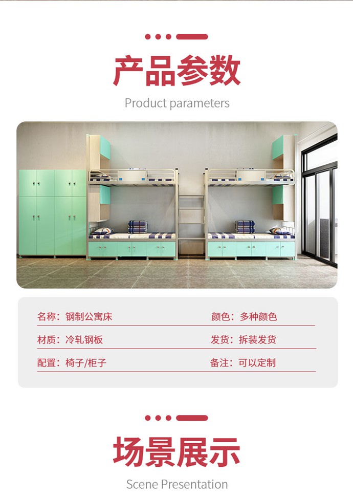 產(chǎn)品簡(jiǎn)介:產(chǎn)品類型:全鋼公寓床類 產(chǎn)品簡(jiǎn)介:公寓床是由床、書柜、衣柜、書桌和梯架組成。書柜和衣柜連接在床架床腿內(nèi)側(cè),書桌將書柜、衣柜連在一起,床架有書柜的一頭安裝有梯架,床架的另一頭與梯架同側(cè)有護(hù)欄,書桌的桌面下有鍵盤支架和抽屜架。由于床是立體空間組合,節(jié)省了空間,而且整齊美觀,又便于管理。 保養(yǎng)方法:1、不得擺放在高溫、潮濕、震動(dòng)劇烈、光線強(qiáng)烈的地方,居室應(yīng)保持通風(fēng)涼爽。 2、對(duì)公寓床進(jìn)行清潔時(shí),應(yīng)先用雞毛撣之類柔性的器具進(jìn)行清塵,再用軟布輕輕擦拭。 產(chǎn)品介紹 公寓床是由床、書柜、衣柜、書桌和梯架組成。書柜和衣柜連接在床架床腿內(nèi)側(cè),書桌將書柜、衣柜連在一起,床架有書柜的一頭安裝有梯架,床架的另一頭與梯架同側(cè)有護(hù)欄,書桌的桌面下有鍵盤支架和抽屜架。由于床是立體空間組合,節(jié)省了空間,而且整齊美觀,又便于管理。 保養(yǎng)方法:1、不得擺放在高溫、潮濕、震動(dòng)劇烈、光線強(qiáng)烈的地方,居室應(yīng)保持通風(fēng)涼爽。 2、對(duì)公寓床進(jìn)行清潔時(shí),應(yīng)先用雞毛撣之類柔性的器具進(jìn)行清塵,再用軟布輕輕擦拭。